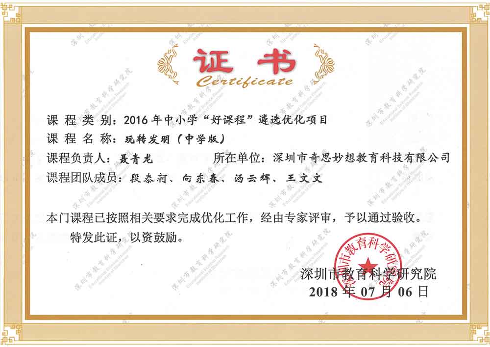 创造了国内 “实物载体创新法”,是目前深圳中小学创新教育,实力最强的教育机构
